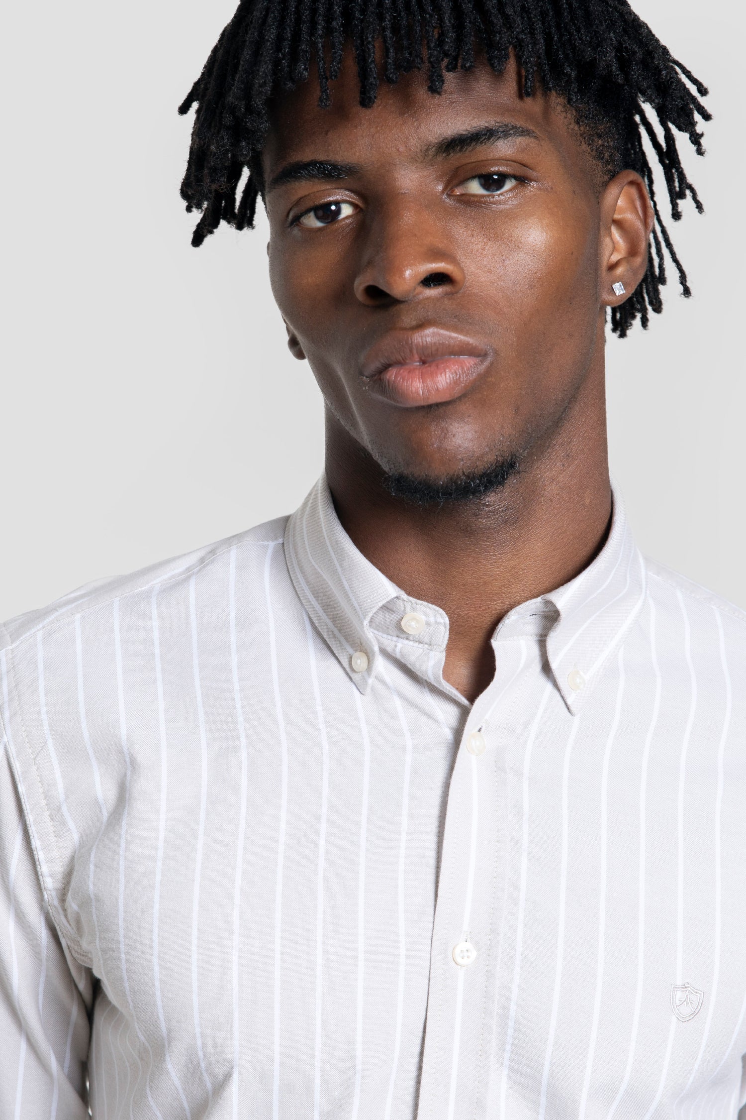 La camisa Oxford con raya ancha en color arena ofrece un diseño clásico renovado con un patrón distintivo que aporta personalidad y elegancia. Su confección en tejido Oxford asegura durabilidad y comodidad, mientras que el tono arena aporta calidez y versatilidad, ideal para combinar en ambientes tanto formales como casuales con un estilo impecable.