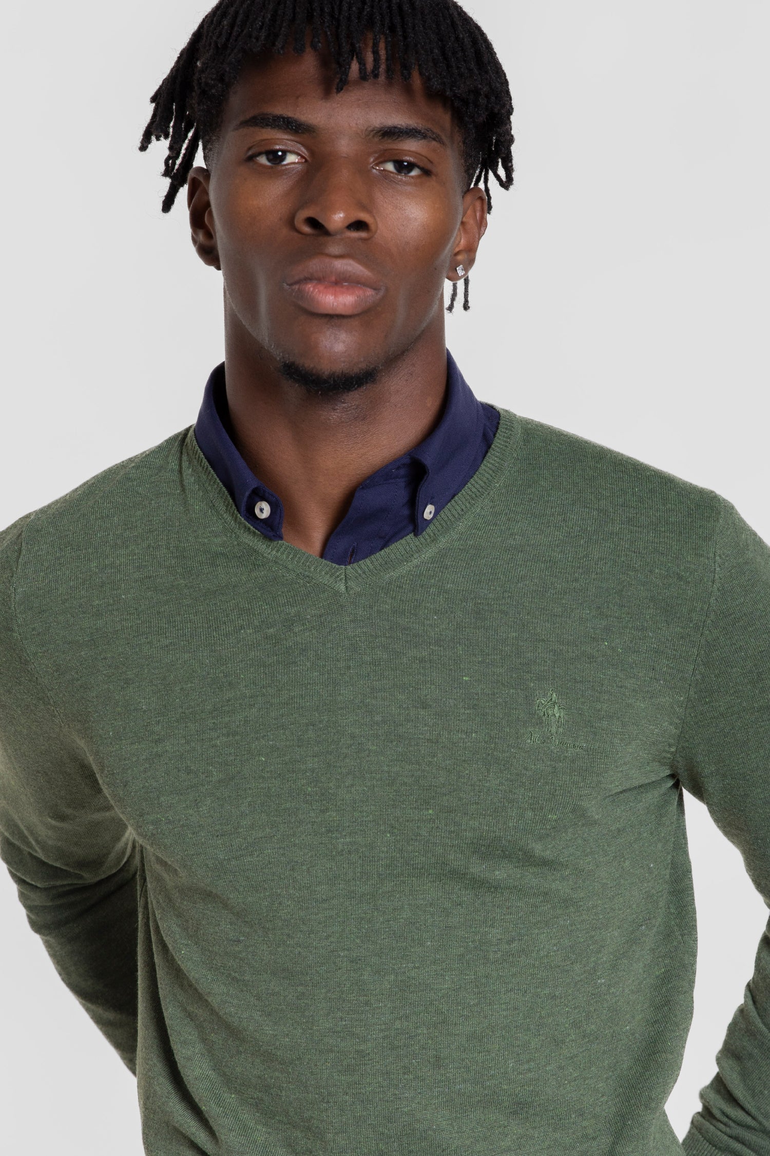 Este jersey de cuello pico en color kaki, parte de la línea Raíces de A LA VAQUERA, se presenta como una prenda básica y atemporal. Su tejido fino lo convierte en una opción perfecta para el otoño o para combinar con una camisa, ofreciendo versatilidad y comodidad en cualquier ocasión. Diseñado para adaptarse a todo tipo de estilos, este jersey aporta elegancia discreta y funcionalidad en el día a día.