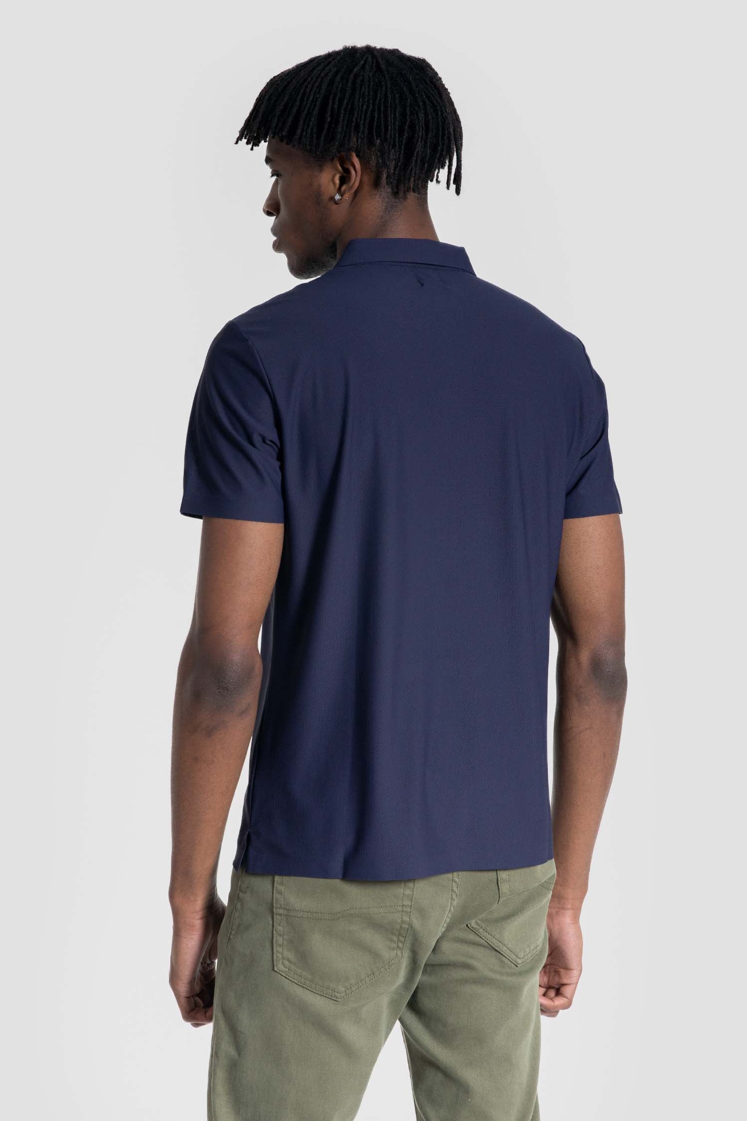 Polo de manga corta en color marino de diseño limpio y contemporáneo pensado para colecciones de alta rotación y uso transversal