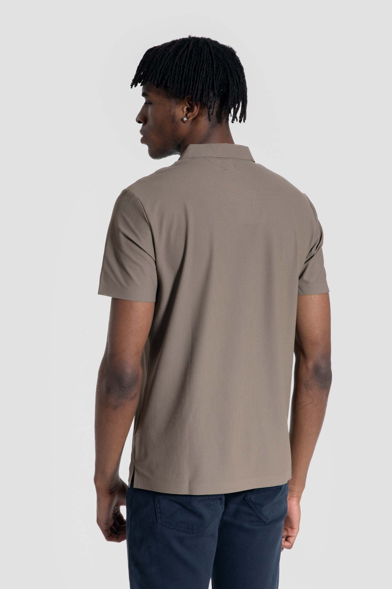 Polo de manga corta en color marrón de diseño limpio y contemporáneo pensado para colecciones de alta rotación y uso transversal
