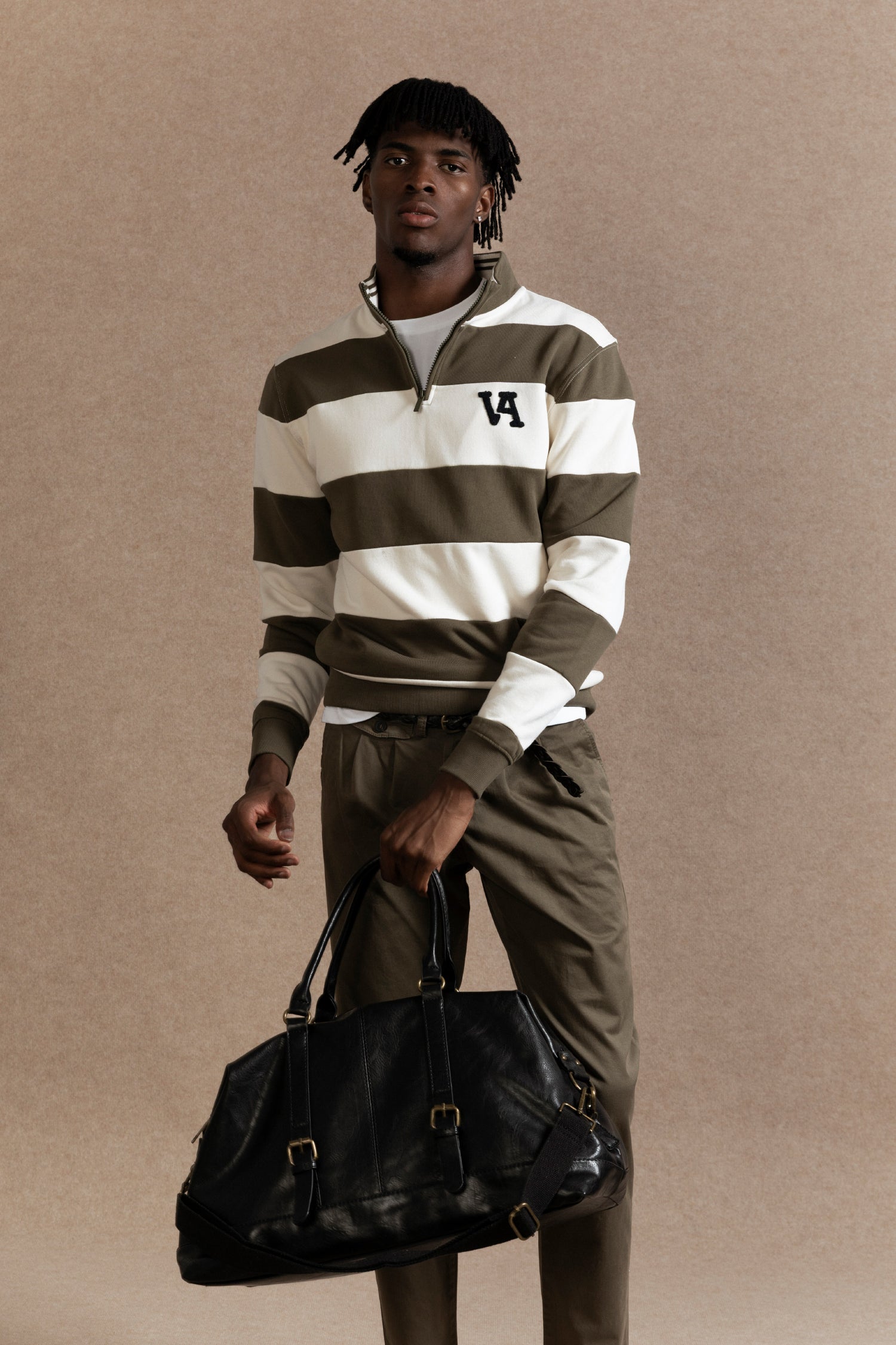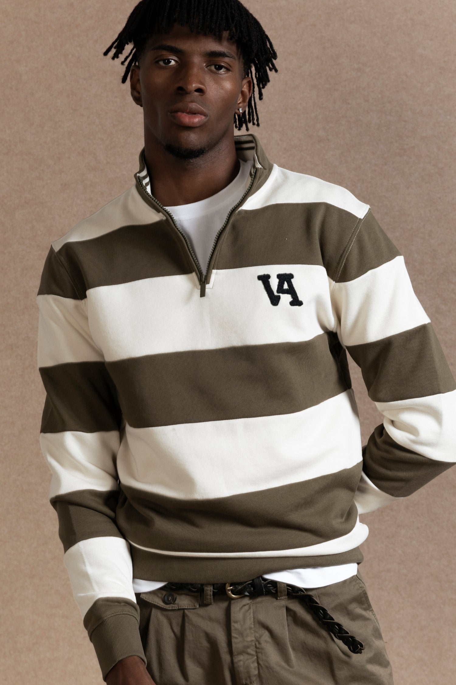 Esta sudadera en color kaki con raya arena combina estilo y comodidad gracias a su cremallera en el cuello que facilita su ajuste. Fabricada en tejido 100% algodón, ofrece una sensación suave y transpirable, ideal para uso diario o actividades casuales. Su diseño funcional y colores neutros aportan versatilidad para combinar con diferentes prendas.