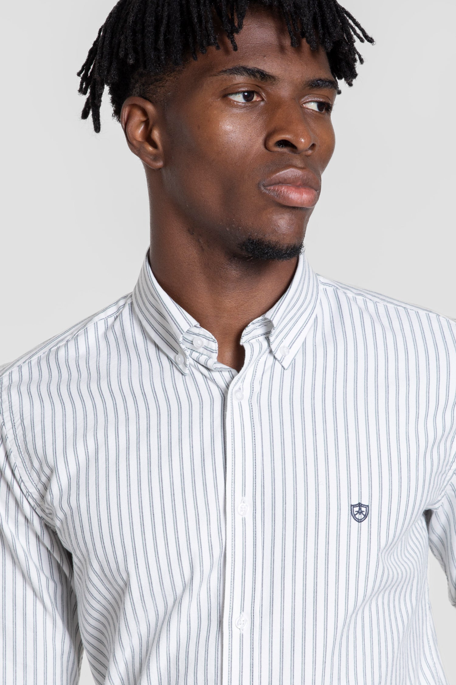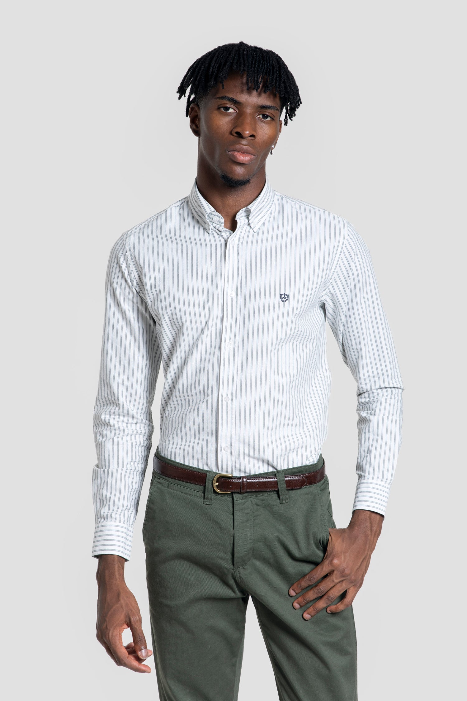 La camisa de rayas finas en tono kaki combina un diseño sobrio y elegante con un patrón sutil que aporta sofisticación. Su corte pensado para ofrecer comodidad garantiza un ajuste ideal para el uso diario o en entornos profesionales. El color kaki añade versatilidad, facilitando combinaciones con diversas prendas para un estilo contemporáneo y refinado.