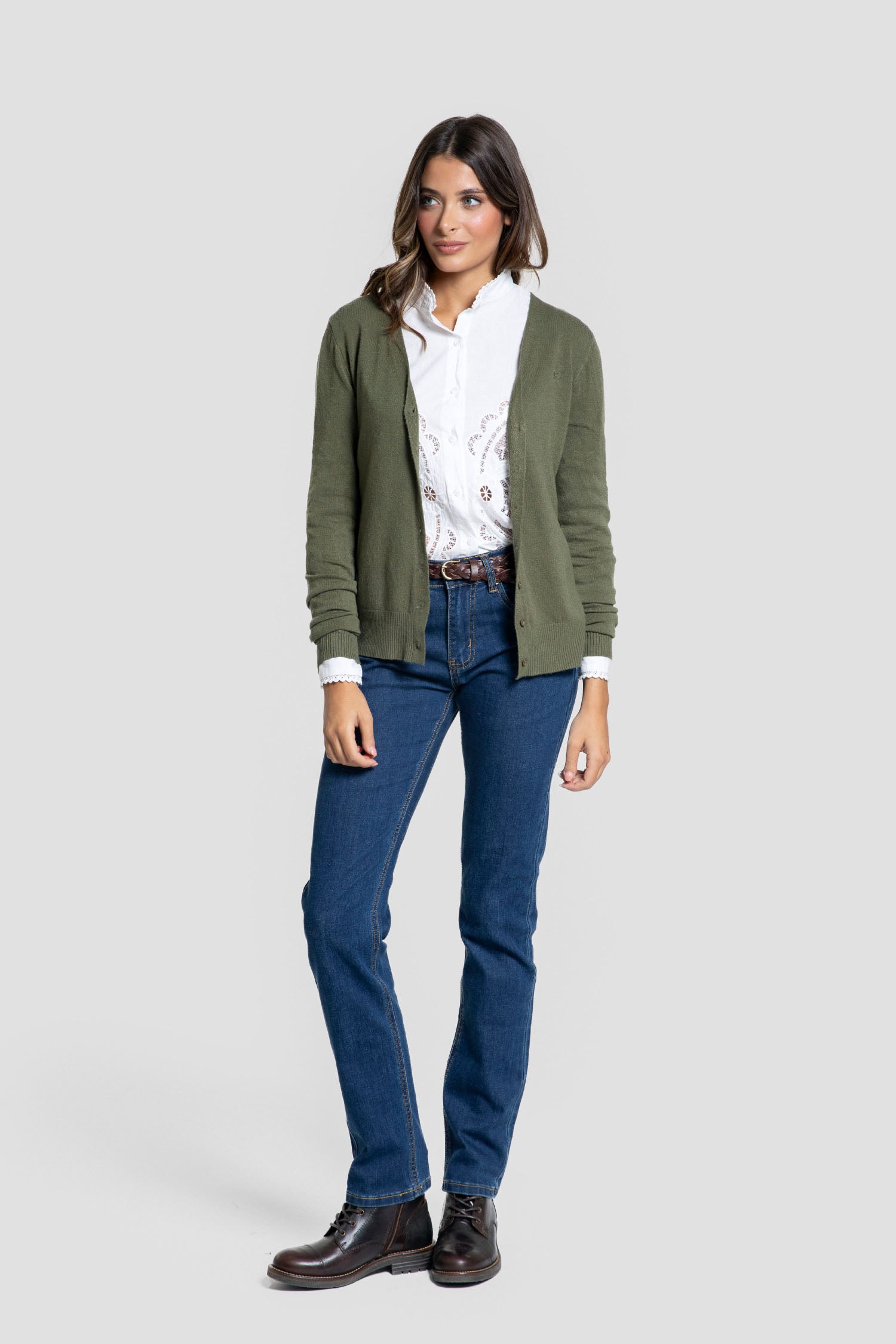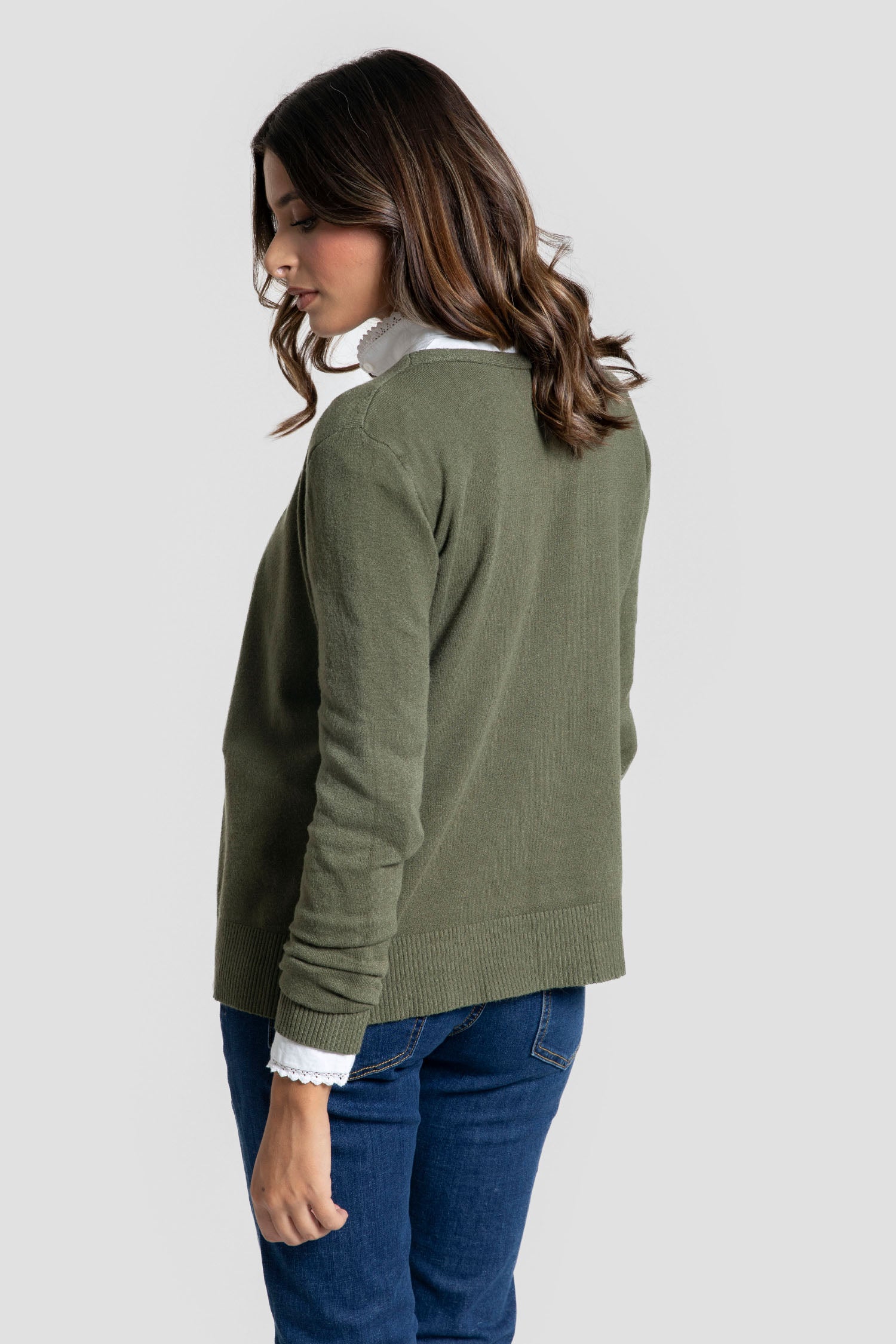 Esta rebeca para señora en color kaki, confeccionada 100% en algodón, se presenta como una prenda esencial para tiendas en la temporada otoño-invierno. Su tejido natural garantiza comodidad y transpirabilidad, ideal para combinar con diversas prendas y ofrecer versatilidad a tus clientas durante los meses más fríos. Un básico atemporal que aporta calidad y estilo a cualquiera. Talla Única, equivale a una talla M-L