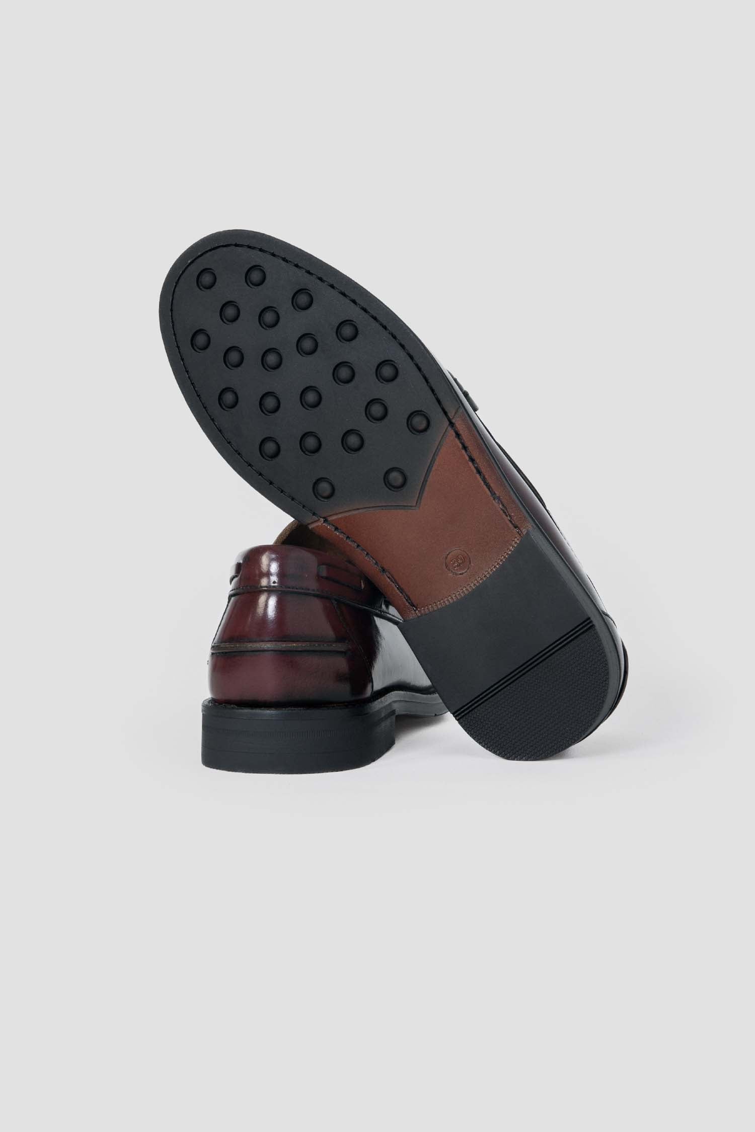 Mocasín con borlas en piel color burdeos de estética clásica y elegante pensado para colecciones formales y smart casual de alto valor añadido