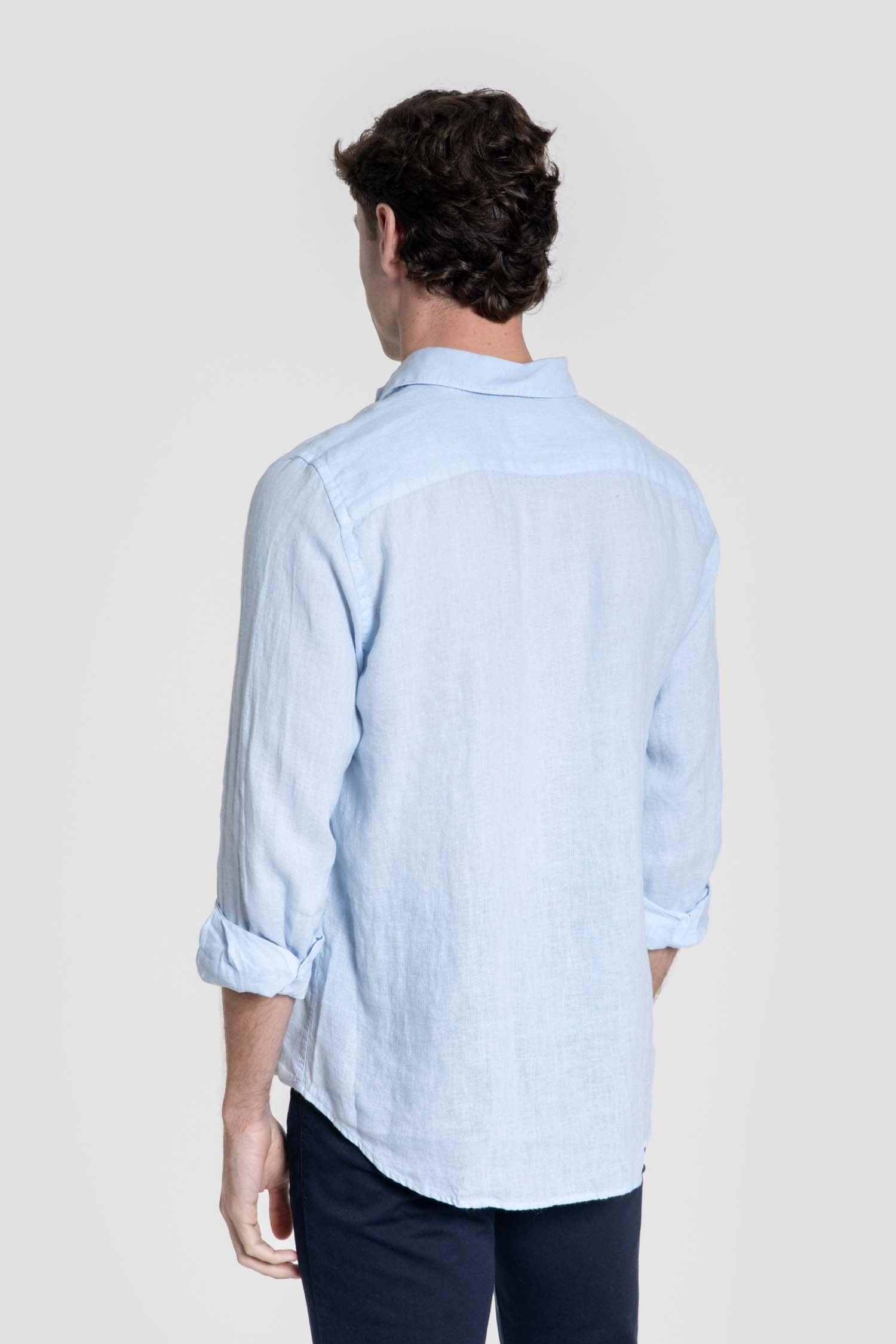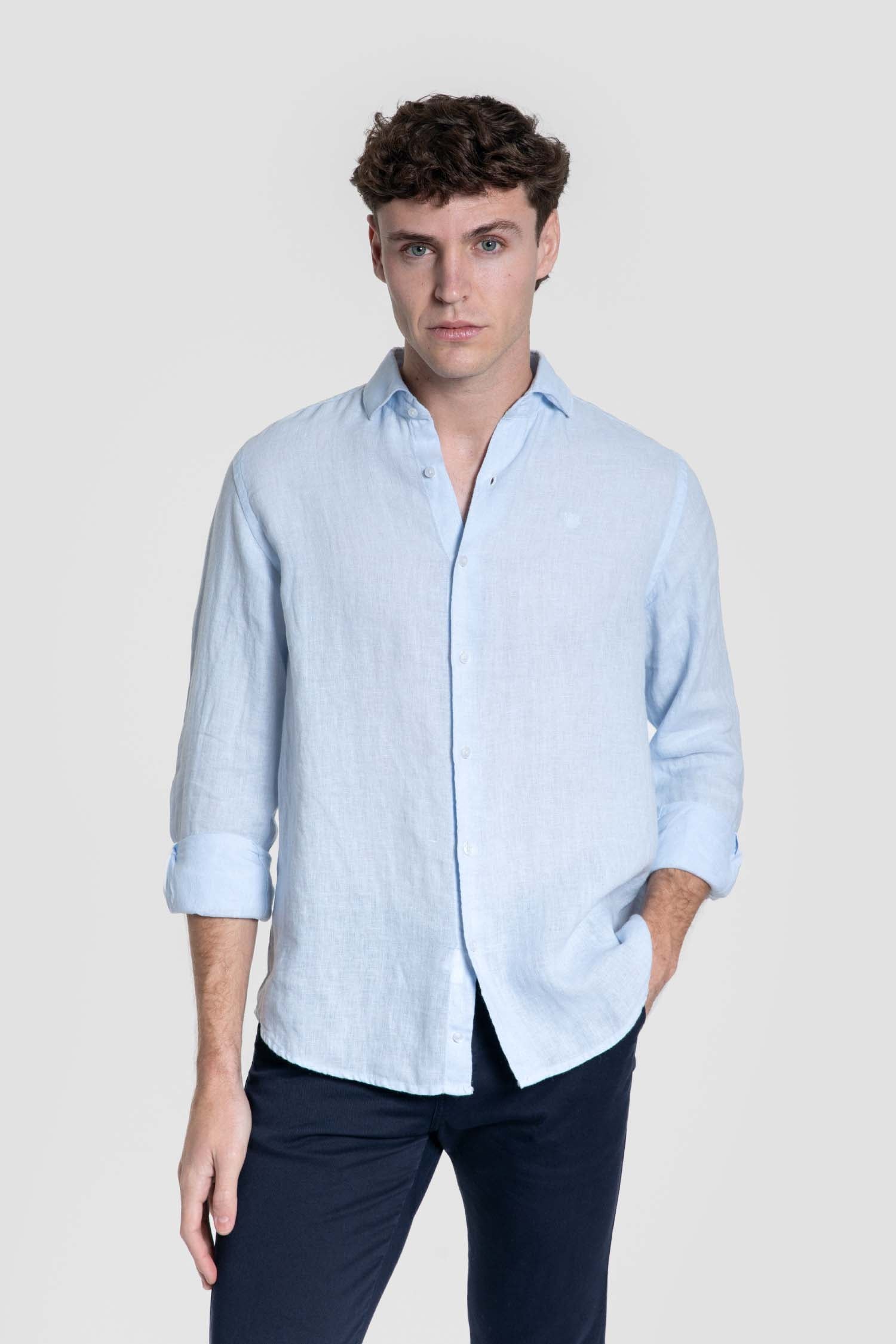 Camisa de manga larga en tejido de lino en colores lisos pensada para aportar frescura natural y un estilo relajado a colecciones de primavera verano