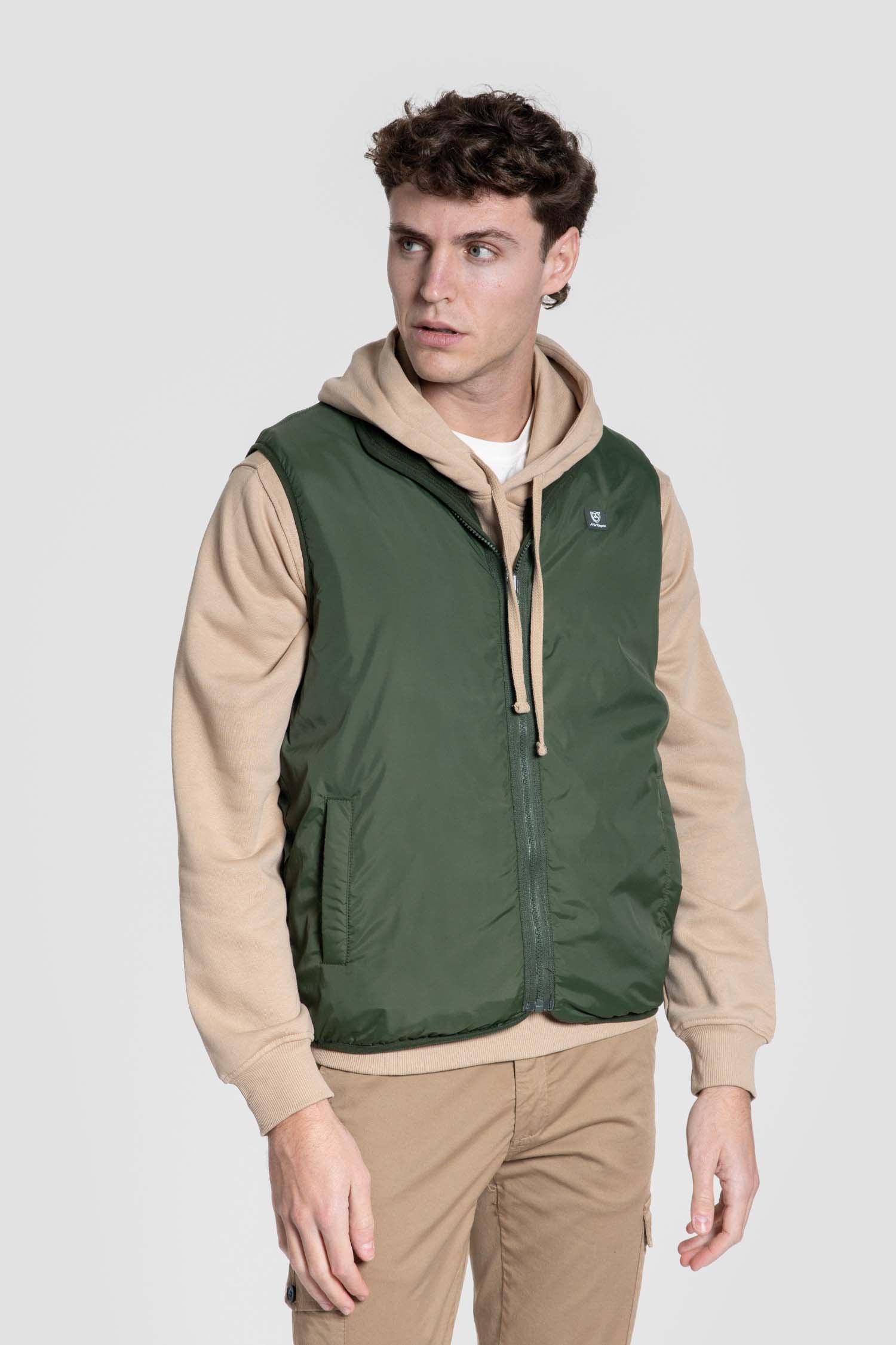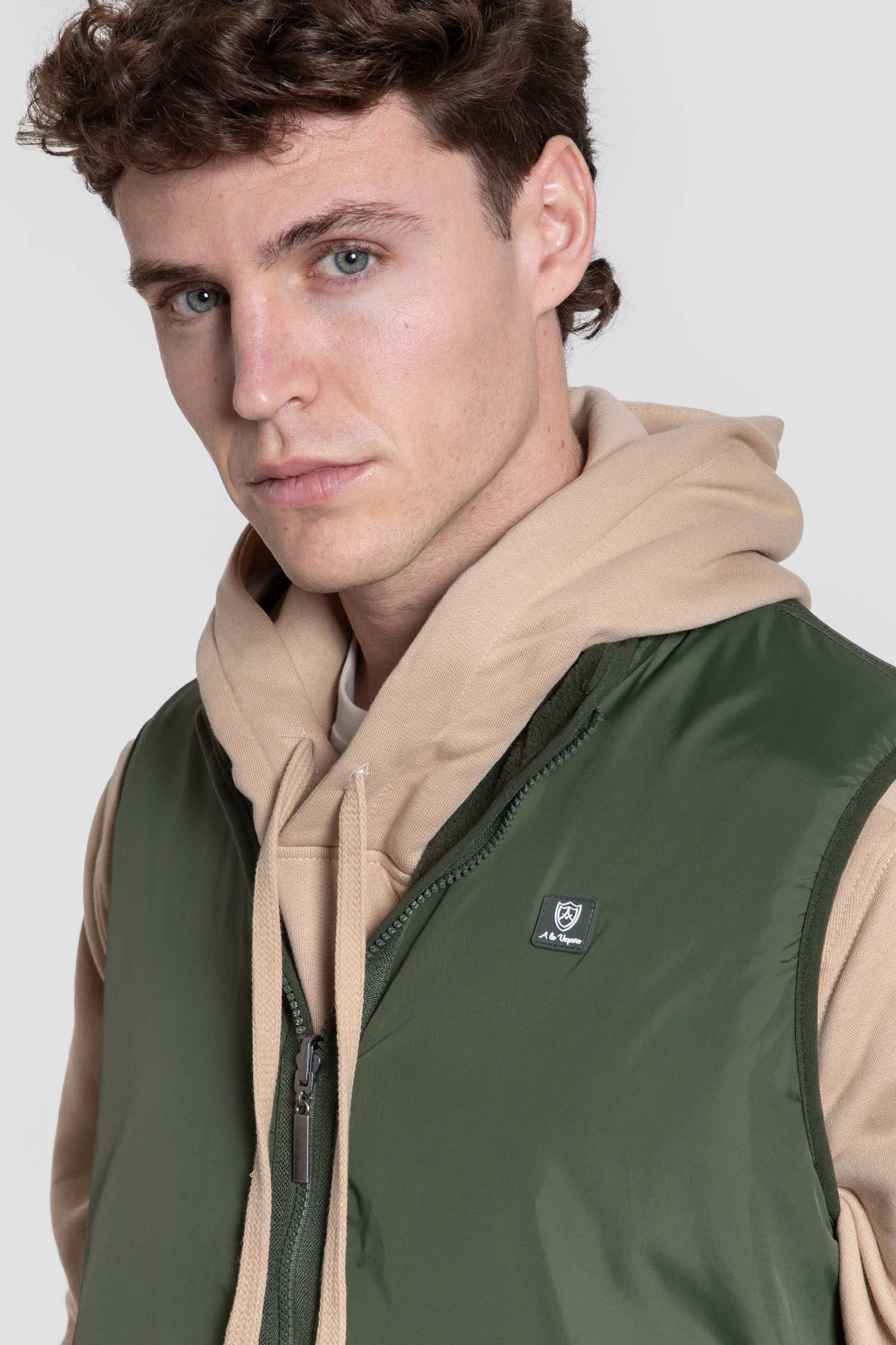 Chaleco acolchado ligero en color kaki de diseño funcional y actual pensado para completar looks de entretiempo y aportar versatilidad a colecciones casual contemporáneas