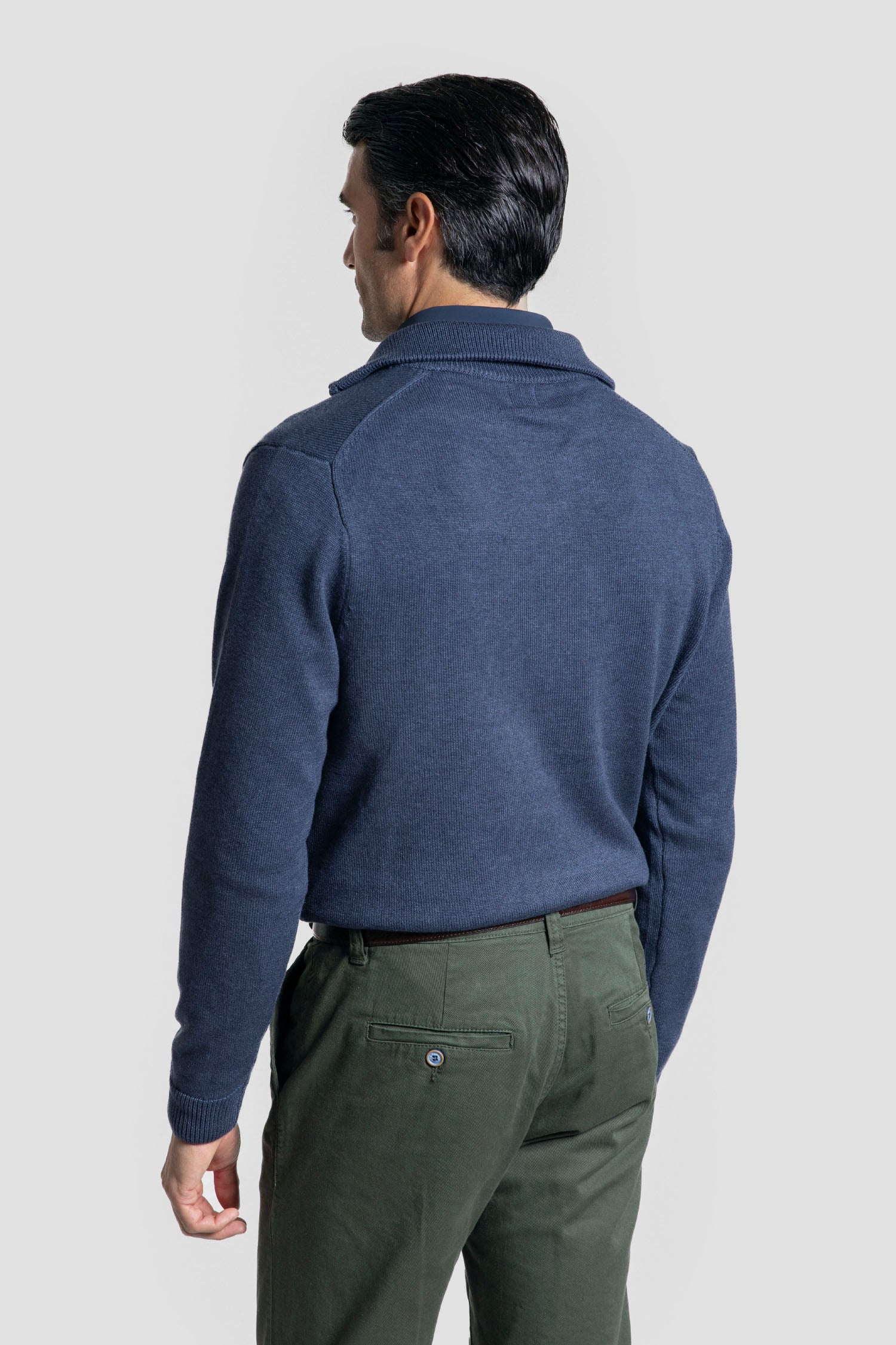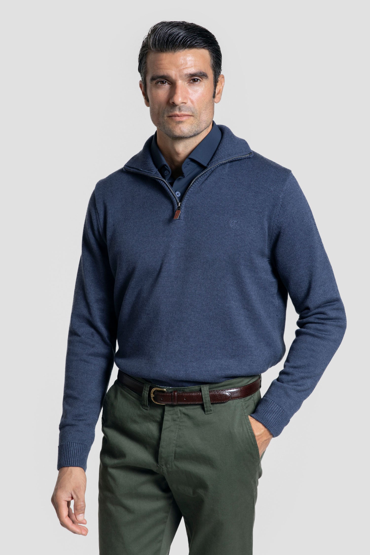 Este jersey azul noche con cuello de cremallera de la colección Raíces combina estilo y funcionalidad. Su diseño moderno facilita el ajuste y aporta comodidad, ideal para aportar un toque sofisticado a cualquier atuendo. Perfecto para quienes buscan una prenda versátil, resistente y elegante en su armario.